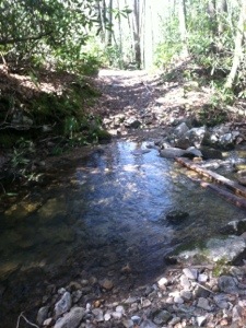 Since Mary had offered to drive any hikers to the trailhead who were waiting by the church at 7:20, I made sure I was ready at the designated time. Not Yet and Sunshine joined me by the road. We said our goodbyes and thank you’s to Mary before she drove away at Dickey Gap. I hiked away from the other two who had decided to have something to eat before beginning. Like yesterday, the gentle trail made for fast hiking. After a short climb, the trail descended for about seven miles.