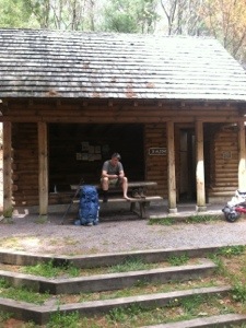 When I reached the Partnership shelter, one of the nicest on the entire AT, I took a brief rest even though I was only 0.1 mile from the Mt. Rogers Visitors’ Center where I planned to conclude today’s hike. Matt and Scarecrow were the only two there, but it was early afternoon. This 16 person shelter, which has running water and a shower, is favored by AT hikers because pizza can be delivered. Still I needed to go into Marion since I hadn’t done laundry in a week and was almost out of food.