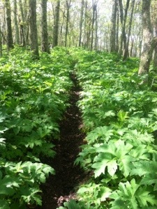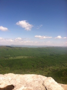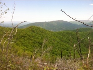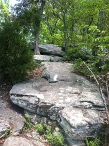 When I reached Petites Gap, War Cry was sitting on a rock taking a break. I likewise stopped briefly. She started up the trail ahead of me; however, I would see her again later in the afternoon. When I got to Marble Spring I walked the 100 yards to fill my water bottles. Then at the Gunter Ridge Trail crossing I took another break to call shuttler Ken to let him know that I would be at 501 by 1:00. From there I hiked toward the next shelter on what was becoming a very hot afternoon.