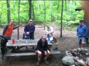 One good thing about my restless night’s sleep was that I awoke at dawn ready to hike. Not wanting to disturb my four shelter mates, I remained in my sleeping bag until around 5:20 when I also heard War Cry rustling around. With her first movement, I began my “getting out of camp” routine. As quietly as possible I moved all my belongings to the picnic table in front of the shelter before deflating my sleeping mat. Knowing the sound would likely awaken everyone else, I saved that task for last.