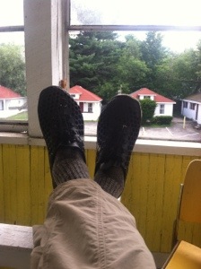 So when we reached the Carter Notch Hut in the cold rain, we called it a day. Pilgrim and I are sharing a bunk room with Rodney and his 12 year old son Josh. Josh is working on summiting all the 4000 footers in New Hampshire. Slim is is another room. At dinner we sat with members of a large family who were out for three days. Bill from Philly was to my right. When he discovered that we were thru hikers he asked many questions. Another member of the family said her father had worked at the hut in the 40’s. Carter is the oldest original hut in the Whites.