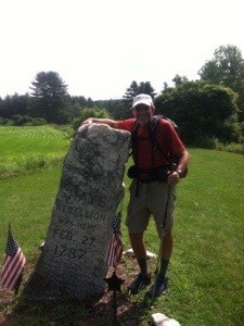 So with a free afternoon I decided to go for a walk. At one point I asked a pedestrian how far it was to the Old First Church. She said it would take me about an hour and forty minutes if I were a fast walker. I arrived at my destination in twenty minutes. After a brief tour of the 208 year old current structure, I ventured to the cemetery behind the church to pay homage to my favorite American poet, Robert Frost. Frost had owned a home in the nearby town of Shaftesbury and was present at the Old First Church for its re-dedication. While visiting the site, a couple from Manassas, VA engaged me in a conversation regarding my hike. I told Greg and Nora about Don and some of the facets of the trail. Seeming very interested, they asked lots of questions. Before leaving the graveyard, I sat on a shady bench by Frost’s grave for awhile and wrote.