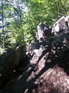 The third and final ford occurred at the East Branch of the Piscataquis River. Even though the river was wider, the depth of water was about the same as the second crossing. Again I easily made my way across. On the other side MM and I sat on a couple of rocks and had lunch. While dining we watched Sleeping Beauty and Jesse cross using the rock hop approach. They only got a little wet. Since we were ready to move on, they took our rocks for their lunch. We would see no other north bounders throughout the afternoon; however, we did meet Fifteen who was walking south on a flip flop.