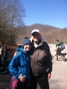 When the the road at Devil Fork Gap came into view, the number of hikers we had seen was still at 15. Then as we rounded a bend and spotted the parking lot, four hikers were preparing to head our way. I had won the game on our first day on the trail. We had met 19 folks, all thru-hikers. Even with my roll down the side of a mountain, it was an OK day. It felt good to be back on the A.T. I’ll re-evaluate the back later this evening, but my plan right now is to hike again tomorrow. And if I do I’ll try to pay closer attention to flat sections of trail with no obstacles. That’s what got me today, so I need to make sure it doesn’t happen again.